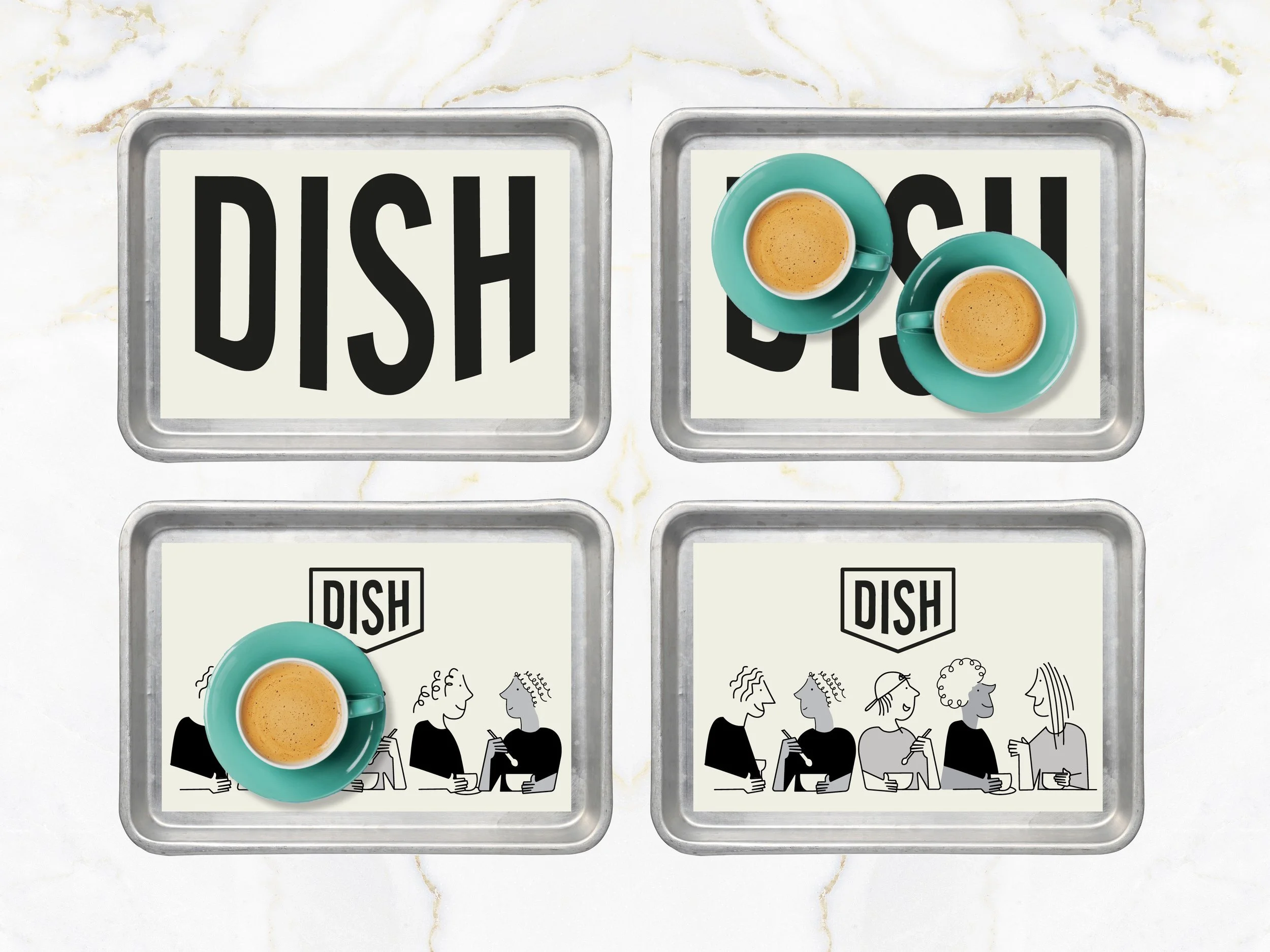 The Dish logo mark is confident and robust. It was designed to be reminiscent of a seal of approval that you would find on a quality product. The Dish mark lets the customer know this is a place where quality matters.